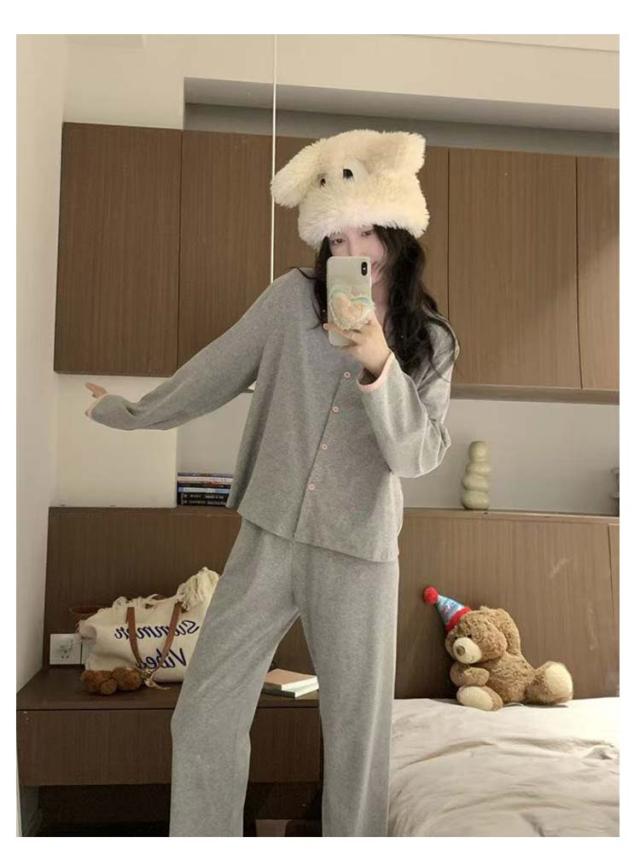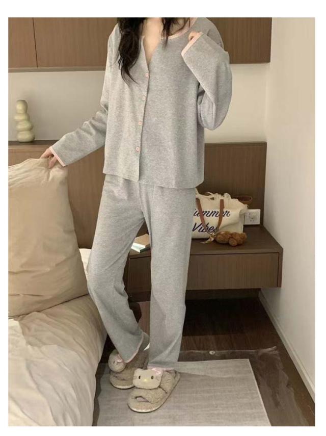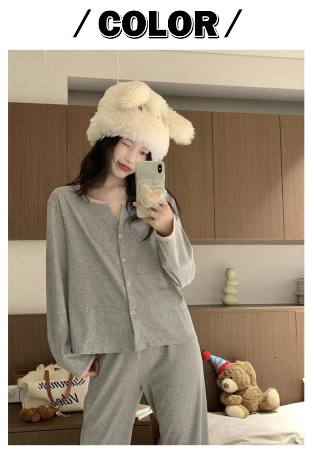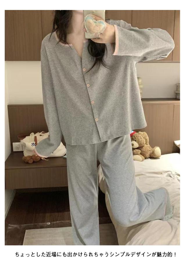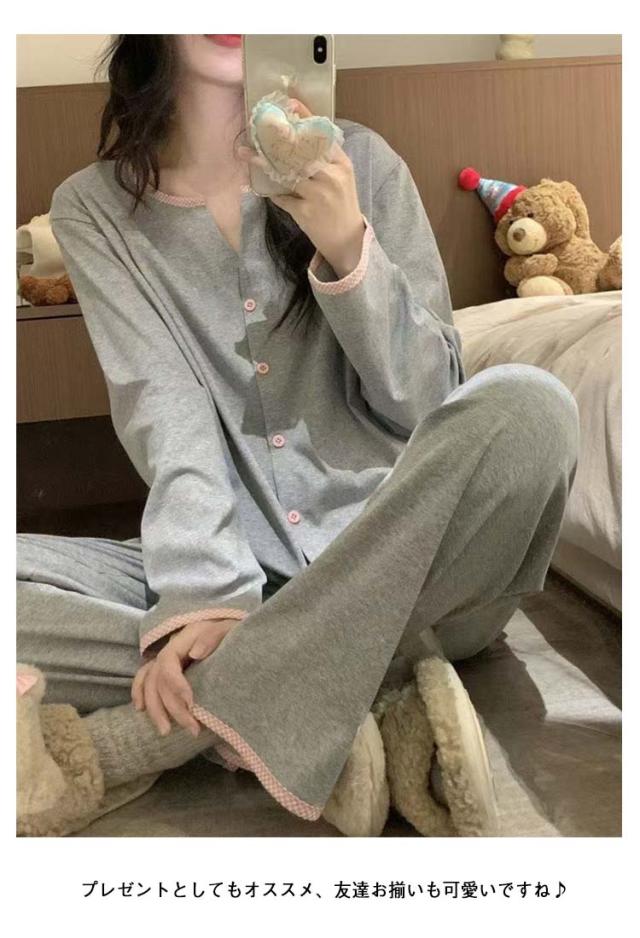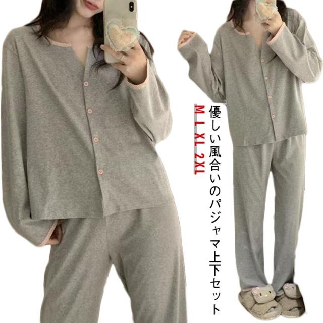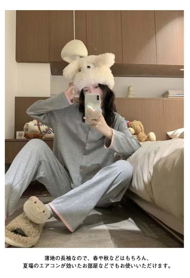 春秋 長袖 ルームウェア レディース パジャマ 女性 かわいい ゆったり 薄手 入院 前開き パジャマ 秋冬 おしゃれ 可愛い 無地 シンプル 長ズボン 大人 大きいサイズ 寝間着 部屋着 春物 ゴムウエスト リラックスウェア 快適 ギフト