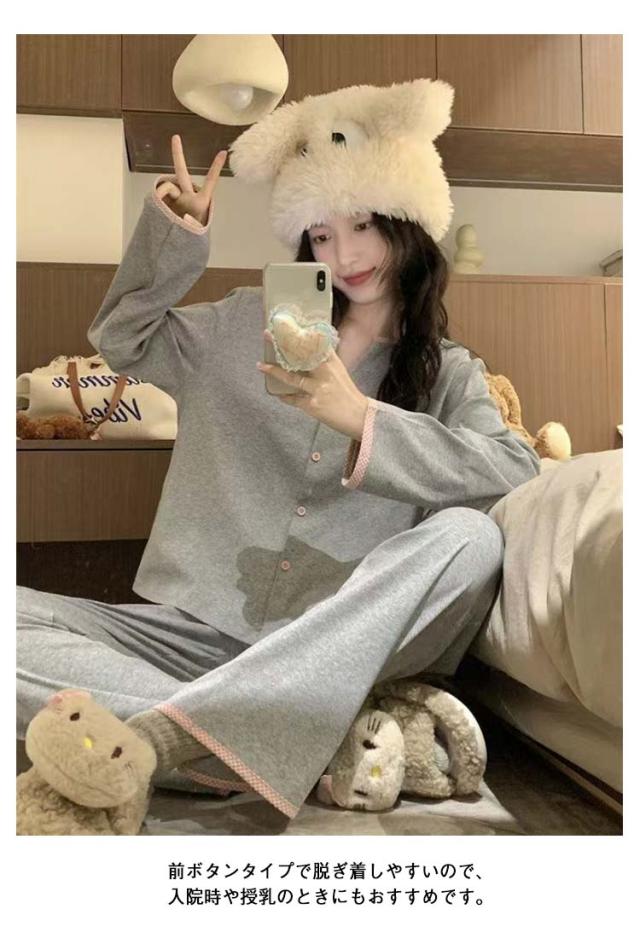 | 優しい風合いのパジャマ上下セット お部屋でもおしゃれで、上品で可愛さと使いやすさも満点。 通気性のよい素材を採用する。お肌に染み込んでいくような気持ちの良い着心地。リラックススタイルを実現しました。 ちょっとした近場にも出かけられちゃうシンプルデザインが魅力的! 前ボタンタイプで脱ぎ着しやすいので、入院時や授乳のときにもおすすめです。 薄地の長袖なので、春や秋などはもちろん、夏場のエアコンが効いたお部屋などでもお使いいただけます。 プレゼントとしてもオススメ、友達お揃いも可愛いですね♪ | |