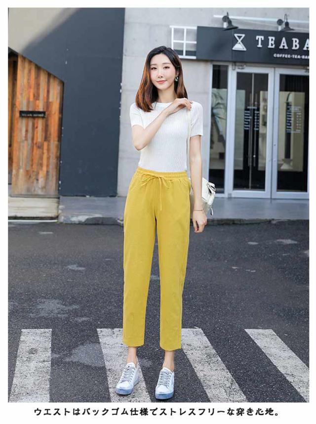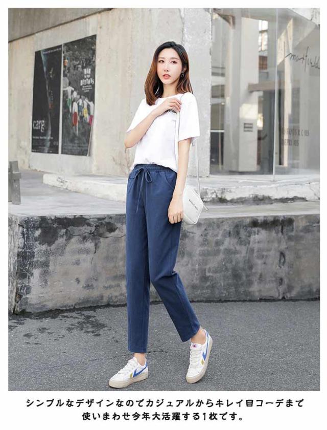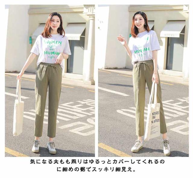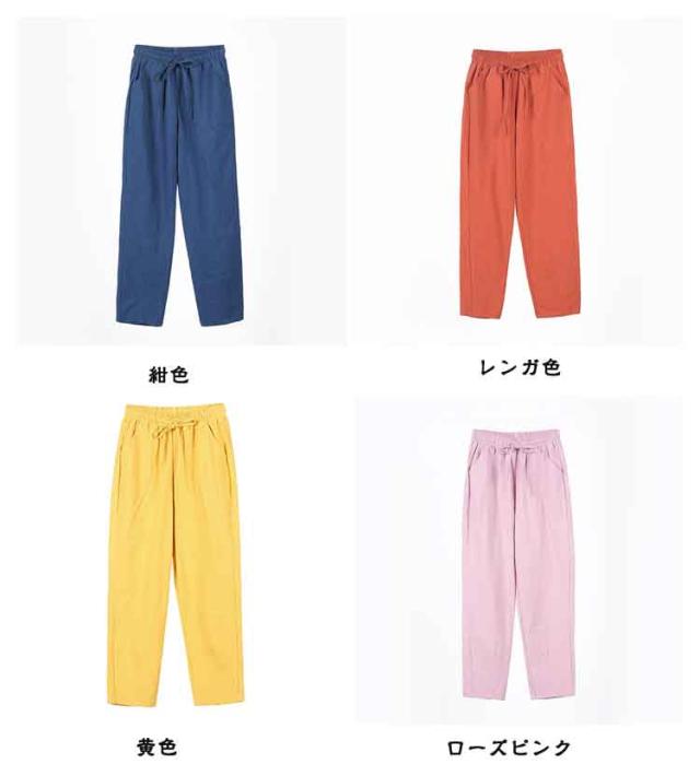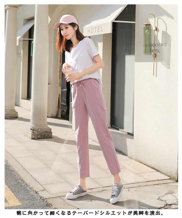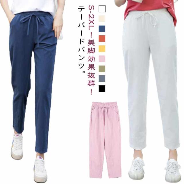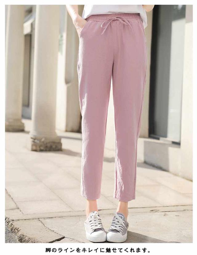 スポーツ パンツ 美脚 イージーパンツ コットン 薄手 リネン調 クロップドパンツ 9分丈 レディース ゆったり 九分丈 可愛い チノパン ボトムス カラーパンツ 体型カバー 大きいサイズ サルエルパンツ 美脚 春夏