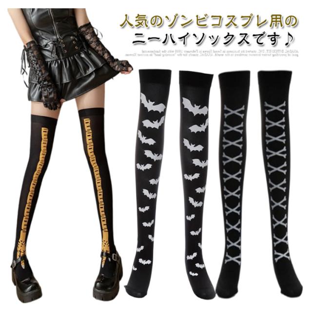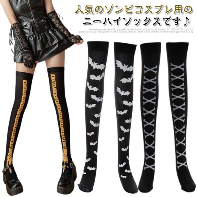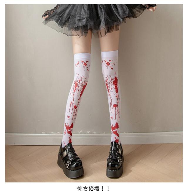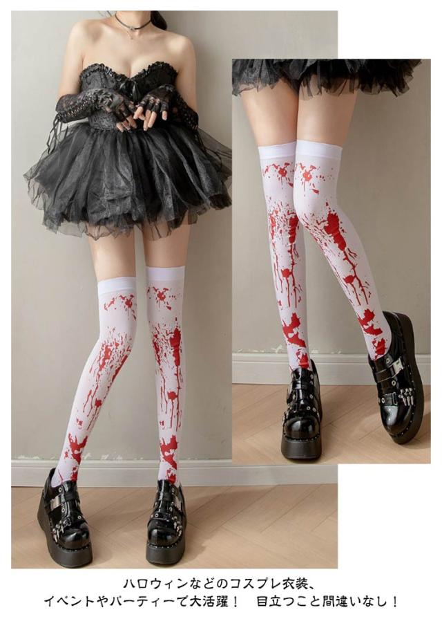 コスプレ ハロウィン ハロウィン ニーハイソックス 骨 クロス 靴下 仮装 ソックス 衣装 パーティー コウモリ ナース 血 ハイソックス 血痕 スケルトン 血まみれ 靴下 ハロウィン 血糊 血のり 返り血 プリント