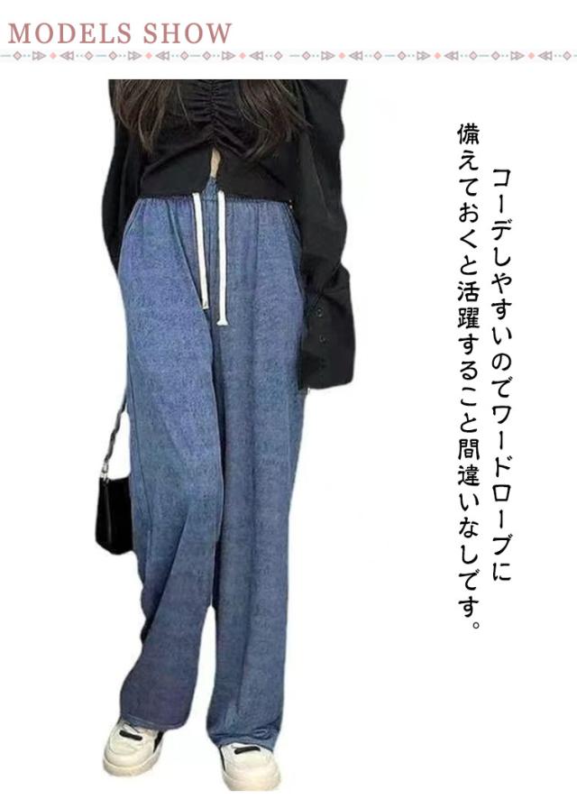 ハイウエスト レディース ワイド パンツ 涼しい ボトムス リラックスパンツ 接触冷感 デニム ゆったり ジーパン デニムパンツ ジーンズ 接触冷感 秋 楽ちん 体型カバー ジーンズ 夏 春 ハイライズ 大きいサイズ デニムパンツ