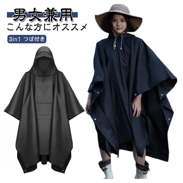 3in1 つば付き レインコート レインコート レディース 自転車 レインウェア リュック対応 レインポンチョ レインコート 多機能 メンズ ロング丈 梅雨フード付き 通勤 バイク 通学 旅行 アウトドア 釣り おしゃれ 男女兼用