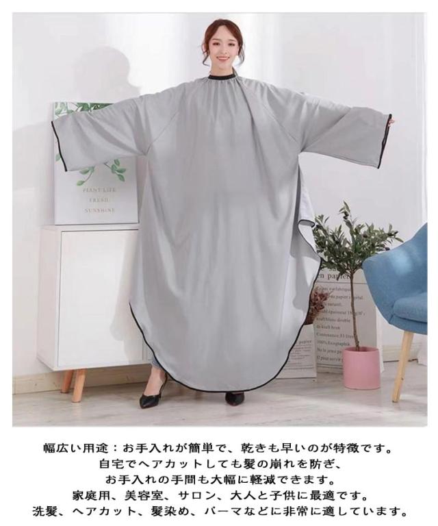 美容院 毛染め 散髪用ケープ 静電気防止 防水 散髪マント 調節可能 散髪用ケープ 大きめ 染髪ケープ 自宅 ヘアカットケープ カットクロス 延長された袖 美容エプロン 散髪用 毛染め セルフカット 大人用 子供用