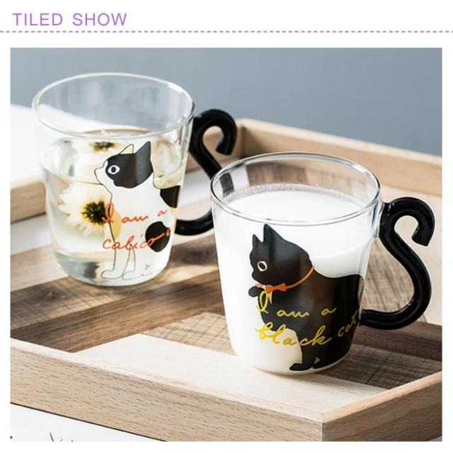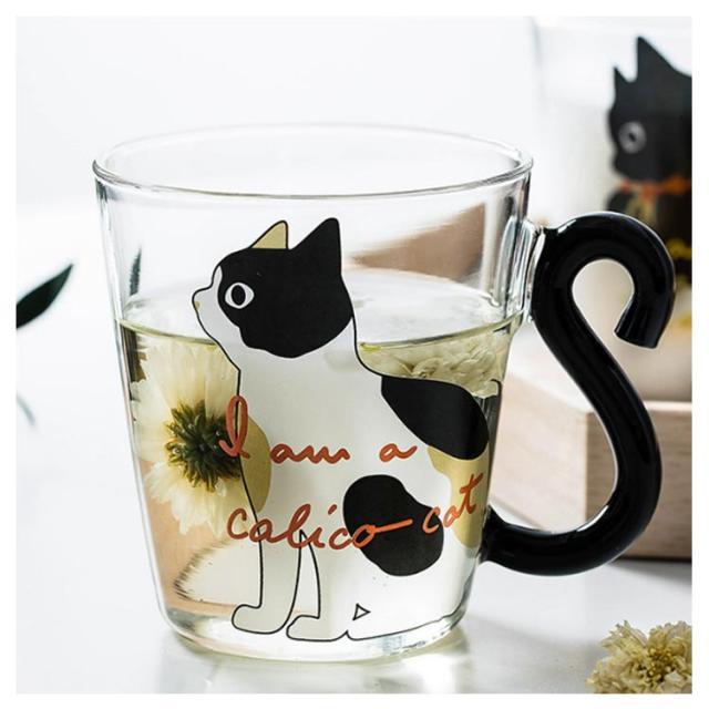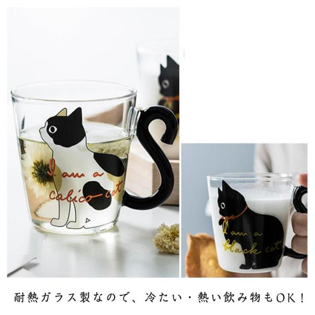 ガラス マグカップ かわいい 2個セット ネコ 猫好き クリアグラス 300ml 黒猫 マグカップ ティーカップ コップ 可愛い 猫 おしゃれ 白猫 三毛猫 猫柄 猫雑貨 かわいい猫のしっぽ取っ手!コーヒーグラス かわいい猫のしっぽ取っ手!コーヒーグラス プレゼント ギフト 誕生日
