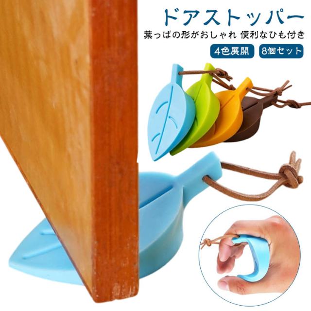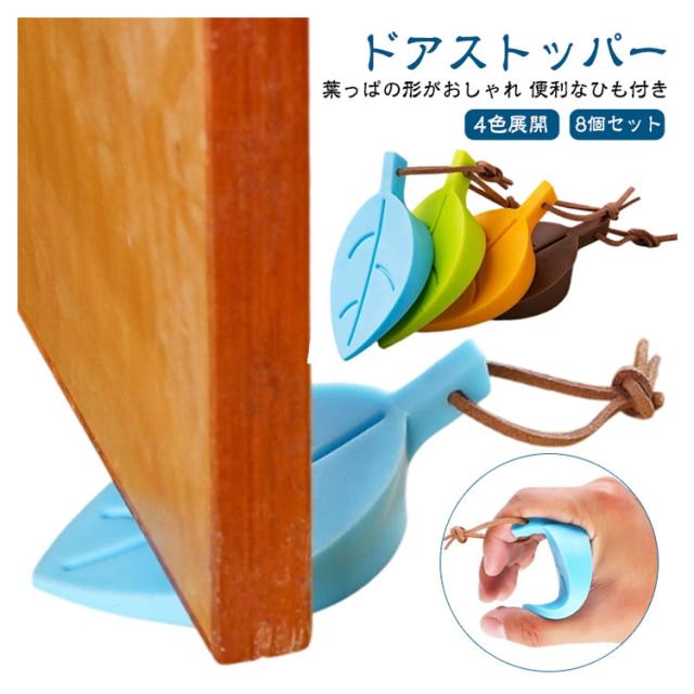 【8個セット】 部屋 ひも付き 玄関 おしゃれ ストッパー 滑り止め 子供 防止 シリコン ドア 室内 ドア止め ドアストップ 葉っぱ型 ゴム かわいい 開閉 ドアストッパー ペット 戸当たり 固定 解放 騒音防止 寝室 換気 指