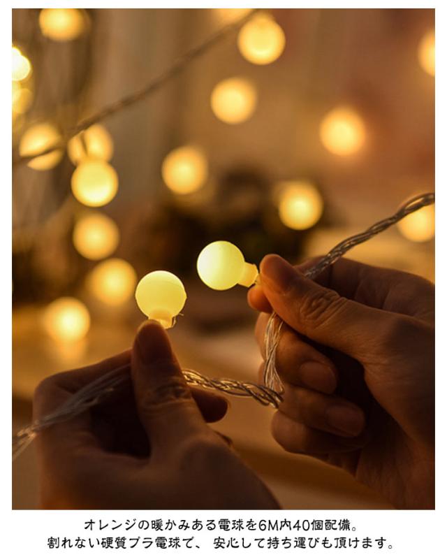 | 長さ10m×80灯 USB+電池式2way給電タイプ 常時点灯+点滅2モード 生活防水仕様 キャンプLEDライト 14種類 新しいキャンプランタンの形 ソロキャンプにもファミリーキャンプにも華やかさ彩るLEDデコライト 遠くからも近くからも夜のキャンプを個性的に演出しますキャンプだけでなく、 いろいろな場面で活躍します ゆらゆら揺らめくオイルランタンの光、 実用性を重視したLEDランタンの光、 どれも良いですが、 全体的な演出と明るみを生み出す LEDデコレーションライトです。 オレンジの暖かみある電球を6M内40個配備。 割れない硬質プラ電球で、 安心して持ち運びも頂けます。 単3電池3本で使用出来ます(電池別売り) またUSB差し込み式で、 どこでもお好きな所に装着可能。 一般的な3M長と違い、 6Mあるので幅広くデコレーション頂けます。 生活防水 大雨に長時間耐えれる完全防水ではございません。急な雨でも仕舞うまで耐えられるほどの防水力と捉えてください。 ぜひあなたのキャンプライフのワンプラスに こちらLEDデコレーションライトをお試しください♪ | |