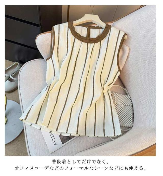 夏 ブラウス きれいめ クールネック ノースリーブ シャツ レディース ゆったり タンクトップ ストライプ シャツ 無地 おしゃれ かわいい プルーオーバー シンプル トップス 夏用 フォーマル 薄手 オフィス 20代 30代 40代