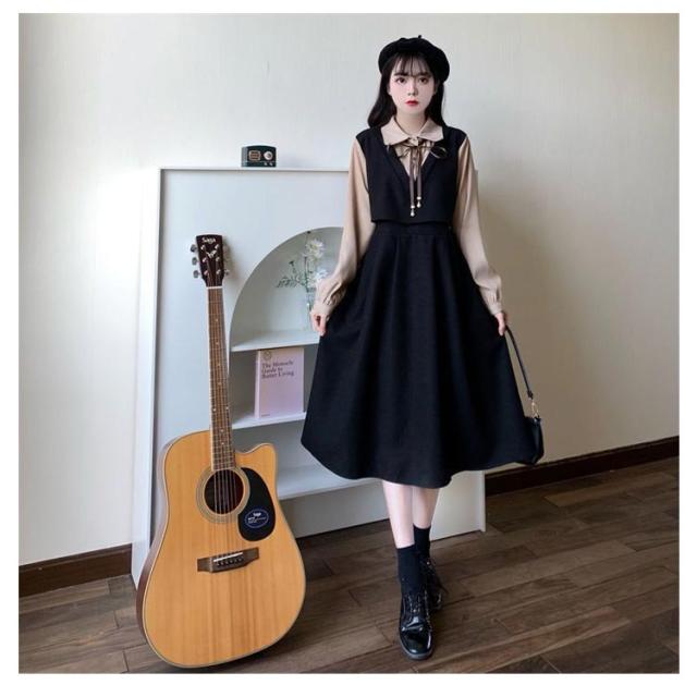 | レトロなテイスト満載の可愛い長袖ワンピース 重ね着風のデザインで1枚でサマになる。 高ウェストデザイン、着るだけで脚長効果を叶える。 通学通勤や女子会、デート、など様々なシーンに大活躍。 | |