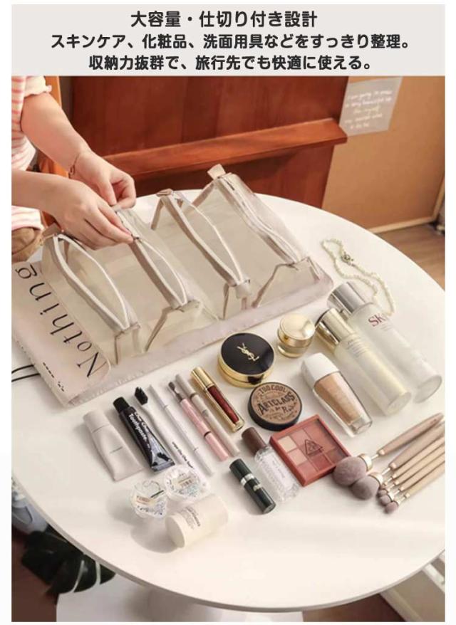 | 大容量 化粧ポーチ 4in1収納バッグ 折りたたみ 仕切り付き 多機能 折りたたみ式でコンパクト収納 使用しない時はスリムに折りたたみ可能。持ち運びやすく、旅行や出張に最適。 大容量・仕切り付き設計 スキンケア、化粧品、洗面用具などをすっきり整理。収納力抜群で、旅行先でも快適に使える。 4in1分離式デザイン 取り外し可能な小物ポーチ付き。メイク道具やアクセサリーを分けて収納でき、整理整頓が簡単。 便利なメッシュポーチ×ゴムバンド 通気性のあるメッシュポーチで中身が一目でわかる。ゴムバンドでボトルも安定収納。 おしゃれデザイン 滑らかなファスナーで開閉スムーズ。シンプルで可愛いカラー展開、日常から旅行まで幅広く活躍。 | |
