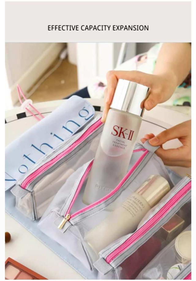 メッシュポーチ 小物 トラベルポーチ 仕切り 多機能 化粧品 コスメポーチ 収納バッグ コスメポーチ スキンケア おしゃれ 化粧ポーチ 旅行ポーチ ポータブル コンパクト 持ち運び トラベルグッズ 旅行