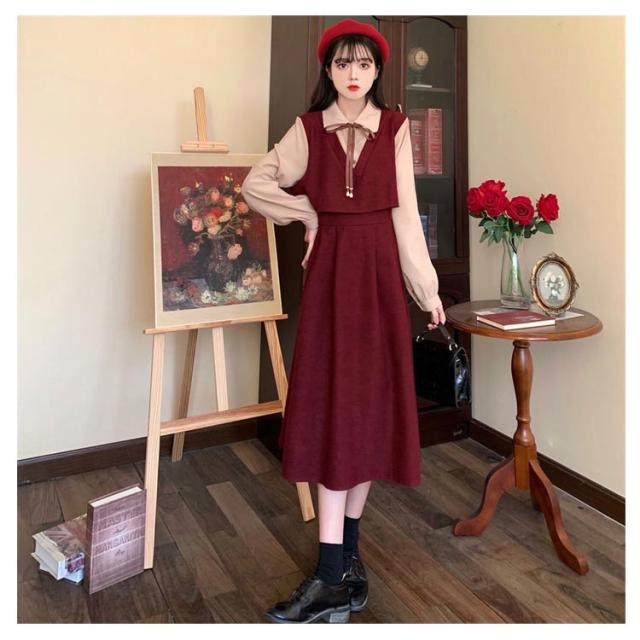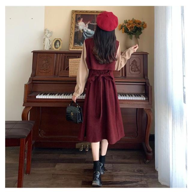| レトロなテイスト満載の可愛い長袖ワンピース 重ね着風のデザインで1枚でサマになる。 高ウェストデザイン、着るだけで脚長効果を叶える。 通学通勤や女子会、デート、など様々なシーンに大活躍。 | |