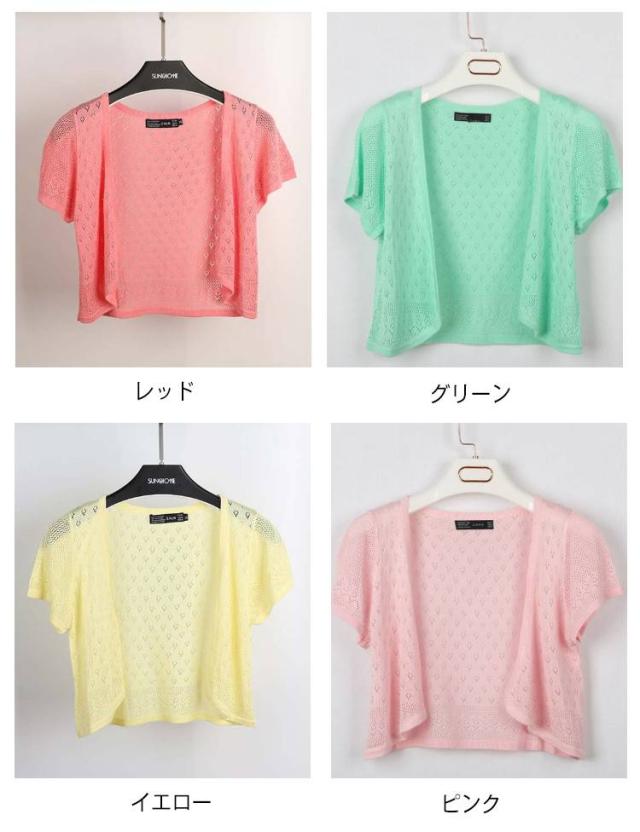 夏 シンプル 洗える ボレロ 紫外線対策 半袖 夏用 春夏 UV 短め カーディガン 春 薄手 レディース ショート丈 uv 上品 サマー フォーマル オフィス ボレロ ワンピース用 結婚式 涼しい きれいめ サマーニット 薄手 透かし トップス 羽織り