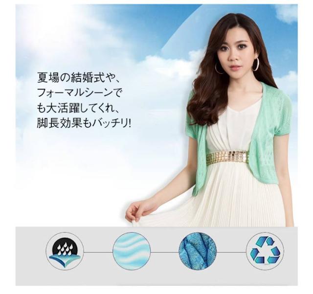| カラーバリエーション豊富な人気の薄手UVカーディガンに、ボレロタイプが仲間入り! 暑い季節のワンピースやロングスカートコーデにピッタリの1枚です。 夏場の結婚式や、フォーマルシーンでも大活躍してくれ、脚長効果もバッチリ! サラッとした肌触りのカーディガンは、かさばらずシワになりにくいので持ち運びも便利。 | |