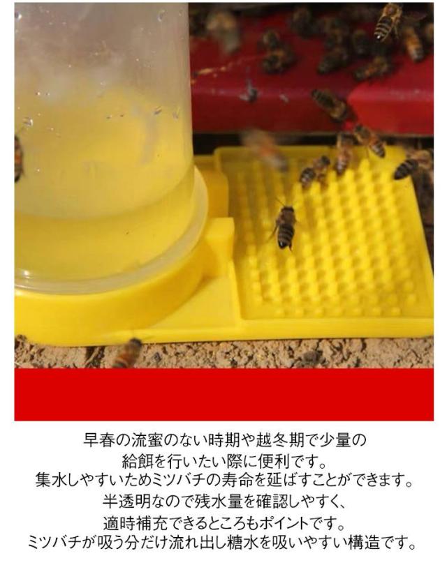 | 養蜂装置をあっという間に設置できる簡単設計で使いやすいミツバチ用給水器6個セットです。 砂糖水を自動的に排出できるシステムで、巣箱の蓋を開けずに効率よく養蜂できます。 早春の流蜜のない時期や越冬期で少量の給餌を行いたい際に便利です。 集水しやすいためミツバチの寿命を延ばすことができます。半透明なので残水量を確認しやすく、適時補充できるところもポイントです。 ミツバチが吸う分だけ流れ出し糖水を吸いやすい構造です。 耐久性に優れ劣化しにくく、お手入れもしやすいです。長くお使い頂けるコスパの高いアイテムです。 | |