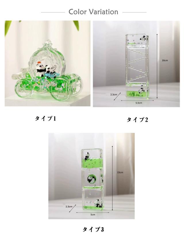 | オイル時砂計 多機能 可愛いパンダ 癒しと遊び心をプラス パンダモチーフの可愛いデザインで子供から大人まで楽しめる 液体がゆっくりと流れる様子に癒され、気分もリラックス インテリアにぴったり 高透明アクリル素材で色彩が鮮やかに映える リビング・書斎・寝室のデコレーションにおすすめ 多機能&ギフトにも最適 ペン立て・スマホスタンドなど実用性も◎ 6種類のバリエーションから選べる 子供へのプレゼントや友人へのプチギフトにもぴったり | |
