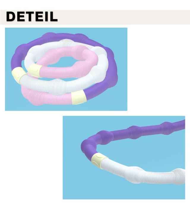 | 【やわらか素材&スプリング構造で快適フィット】 柔軟性のあるPVC+スプリング構造で体にしっかりフィット。 回しやすく、腰やお腹にやさしい設計。 【ダイエットに最適!お腹・ウエスト集中シェイプ】 ウエストや背中、脚、胸など全身をバランスよくトレーニング。 有酸素運動で脂肪燃焼を効率よくサポート! 【静音設計で時間・場所を選ばない】 静音タイプなのでマンションや夜間でも気兼ねなく使用OK! 音を気にせず集中トレーニング。 【折りたたみ式でコンパクト収納】 使用後は折りたたんで省スペース収納。持ち運びもラクラク! | |