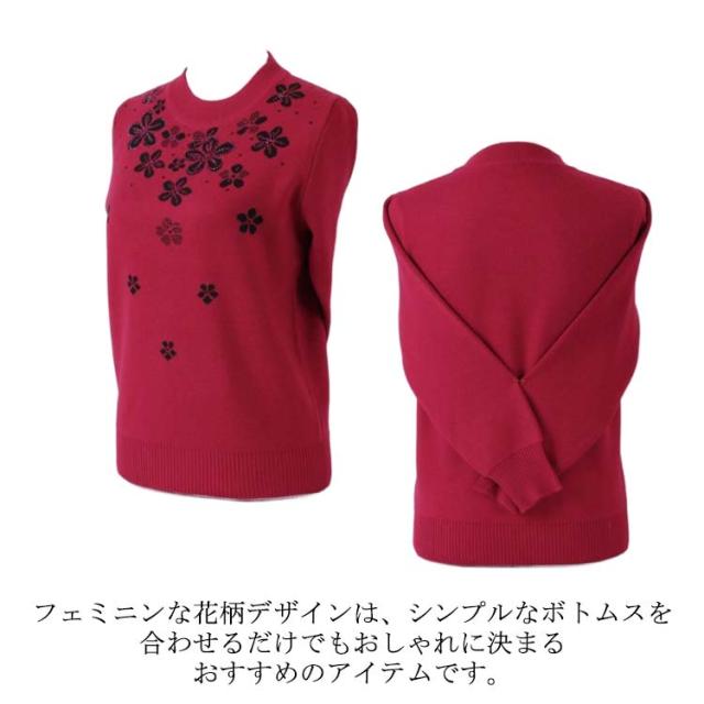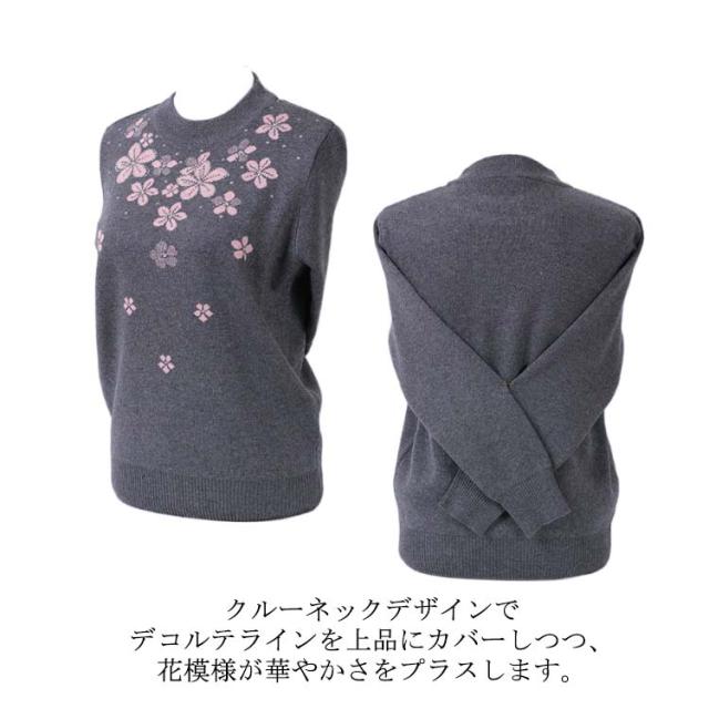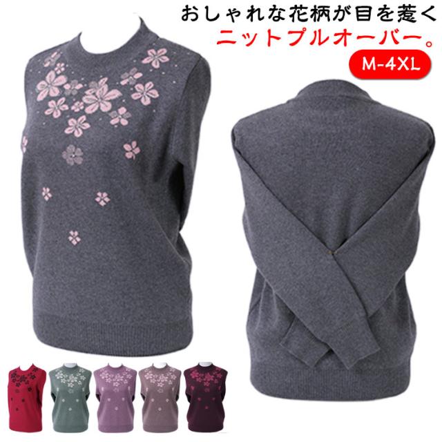 ニットセーター ニットトップス 秋冬 レディース 長袖 シニアファッション 50代 シニアファッション 80代 70代 60代 暖かい ニットプルオーバー クルーネック 婦人服 ミセス 防寒 花模様 お誕生日 ギフト あったか 祖母 おばあちゃん お年寄り 高齢者 老人 敬老の日
