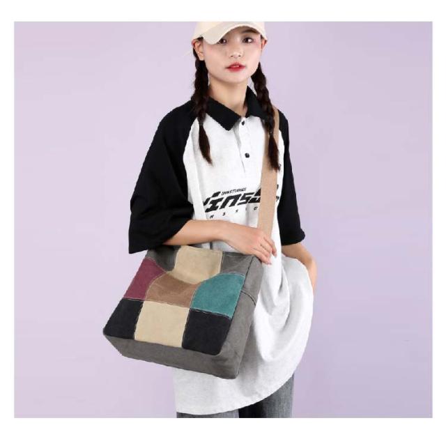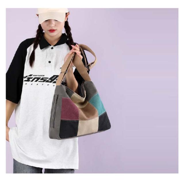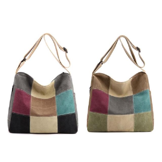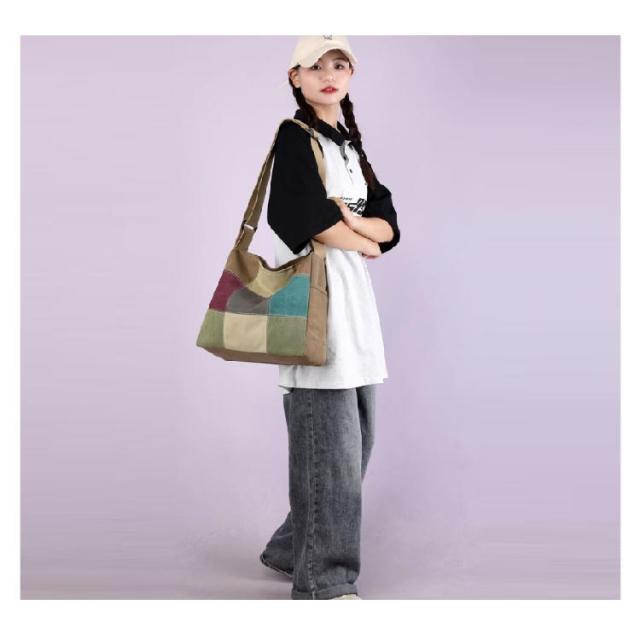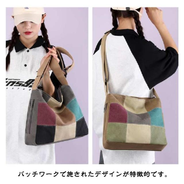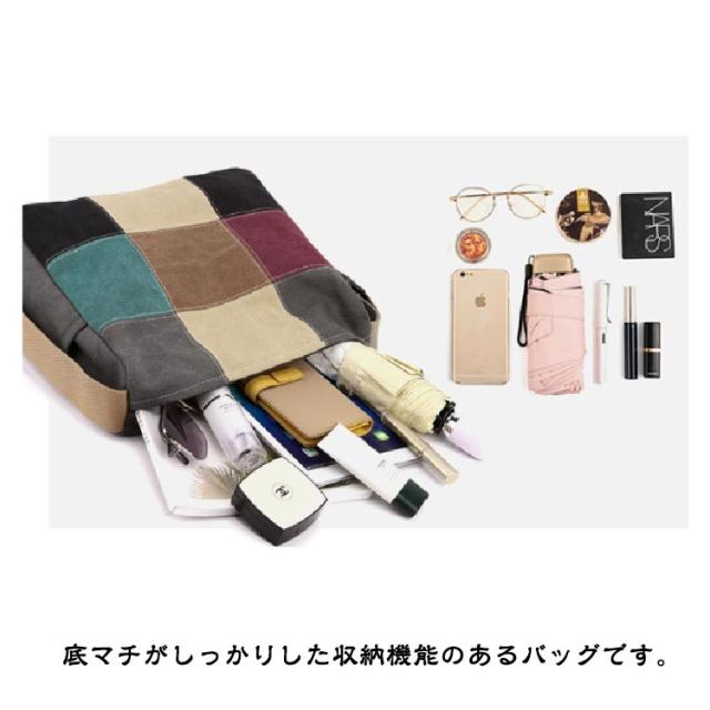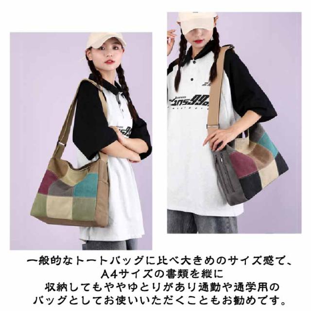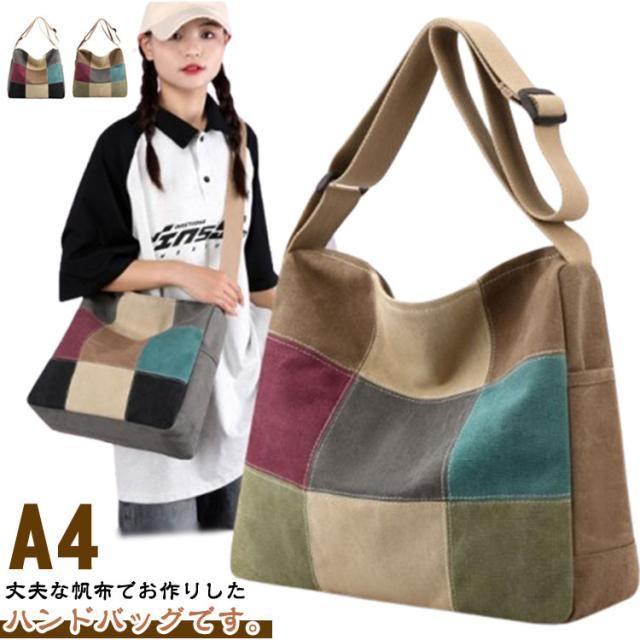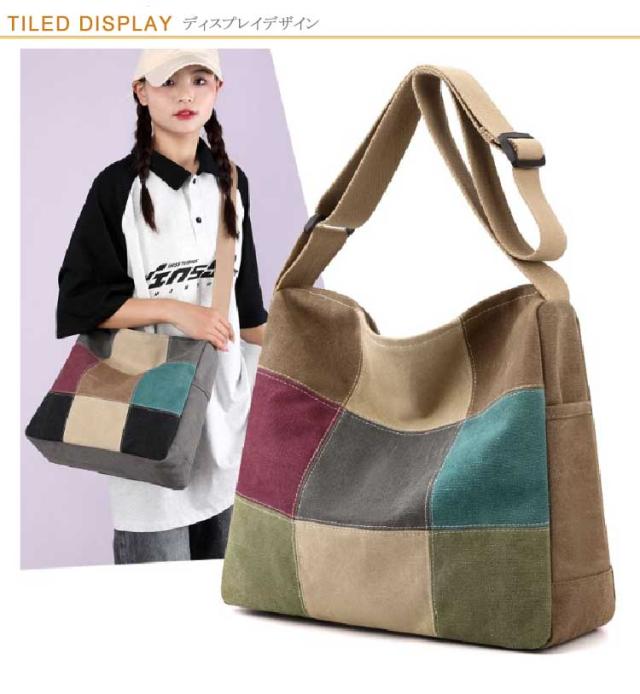 A4 大容量 ショルダーバッグ 斜め掛けバッグ トートバッグ 配色 肩掛けバッグ トートバッグ トート パッチワーク 50代 60代 70代 80代 鞄 丈夫 キャンバス 帆布 レディース 軽量 シニアファッション 母 祖母 敬老の日 プレゼント