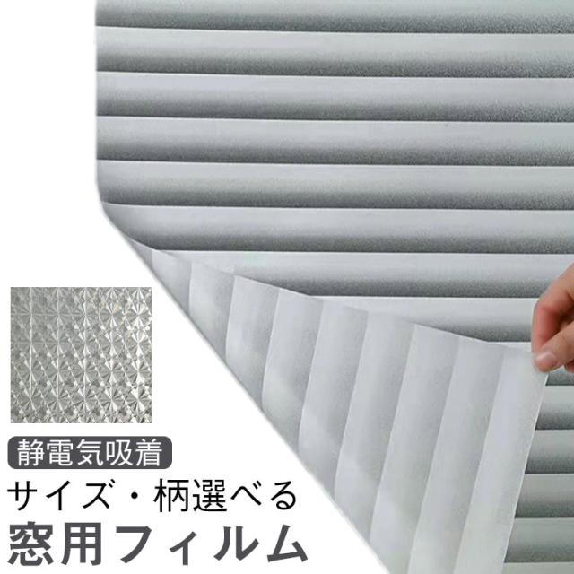 | 静電気吸着 窓用フィルム サイズ・柄選べる 【家具と目を守り、もっと心地よい雰囲気に】 こちらの窓めかくしシートは日差し和らげ、遮光の効果あります。強光が直接室内に差したら、木製や革製などの家具に傷つける可能性があり、お目に悪い影響を与える恐れもあります。こちらの窓の目隠しシートをご使用されましたら、以上のお悩みを防ぐことができ、室内のおしゃれな雰囲気にアップすることもできます。 【残り物なし・賃貸OK】 接着剤不要(静電気吸着)なので、水だけで貼り付け、貼り直しOK!初心者の方でも簡単に貼れます。また、簡単に貼って剥がせ、残留物もなし、再利用も可能です。賃貸や社宅などにも大人気!貼る前には、フィルム裏の保護を剥がしたか、滑々なガラスに貼るかご確認ください。 【UVカット】 明るさを保ちつつ、有害な紫外線を99%阻止でき、家具に優しいアイテムです。また断熱効果の高い特殊素材を使用して、電気代節約に貢献します。カーテンだと閉めたり開けたりが面倒なんで、こんな悩みも解消します。 【耐久防水防カビ】 家庭やオフィスの目隠し、お店のインテリア、ガラス面の擦り傷防止、テーブルマットに活用できます。防水防カビ、厚みもあるので、より長く使えるガラスシートです。 【適用場所】 滑々な平面ガラスであればok。防水性もあるので、水回りでも使用されます。目隠しや紫外線防止用のほかに、こちらにもおすすめ:1.カフェやバーなどの魅力が必要な場所に。2.飛散防止フィルムとして:フィルムの吸着力のため、ガラスが割れても破片が飛び散りにくいです。3.食器棚やテーブルのガラス面の傷防止に。 | |