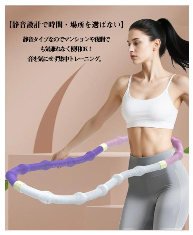 | 【やわらか素材&スプリング構造で快適フィット】 柔軟性のあるPVC+スプリング構造で体にしっかりフィット。 回しやすく、腰やお腹にやさしい設計。 【ダイエットに最適!お腹・ウエスト集中シェイプ】 ウエストや背中、脚、胸など全身をバランスよくトレーニング。 有酸素運動で脂肪燃焼を効率よくサポート! 【静音設計で時間・場所を選ばない】 静音タイプなのでマンションや夜間でも気兼ねなく使用OK! 音を気にせず集中トレーニング。 【折りたたみ式でコンパクト収納】 使用後は折りたたんで省スペース収納。持ち運びもラクラク! | |