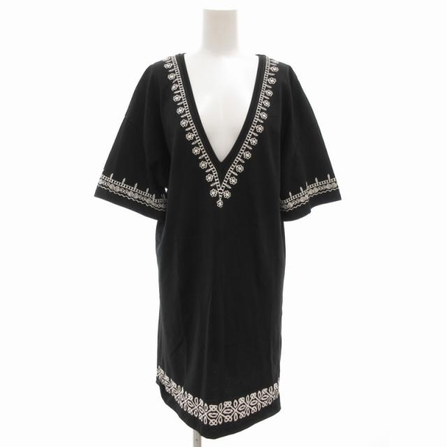 【中古】ザラ ZARA チュニック カットソー 半袖 Vネック 刺繍 M 黒 ブラック /GV ■GY45 レディース