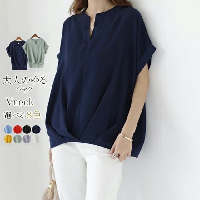 不規則 スキッパーカラー ワイシャツ 半袖シャツ レディース 半袖ブラウス おしゃれ トップス 春夏 Vネックブラウス 半袖 ブラウス 黒ブラウス Vネック プルオーバー 白シャツ インナー 黒シャツ