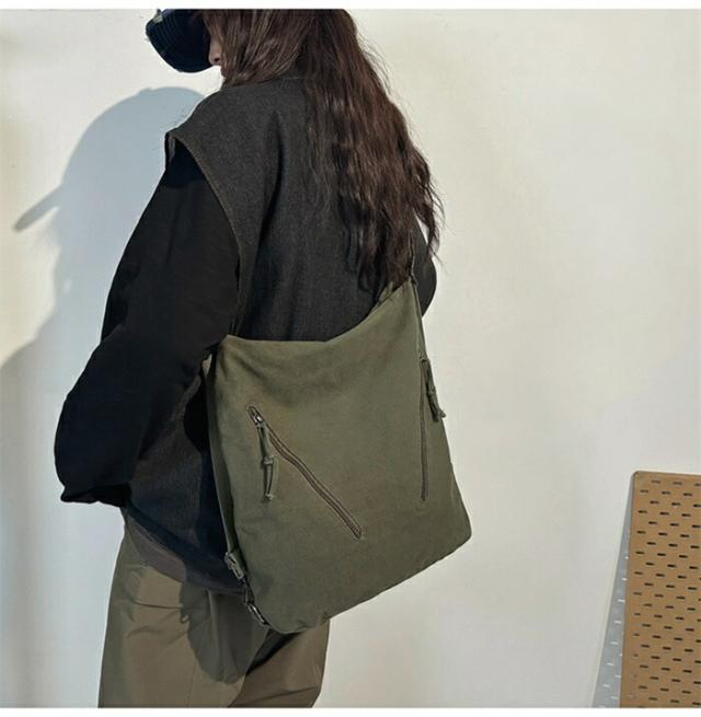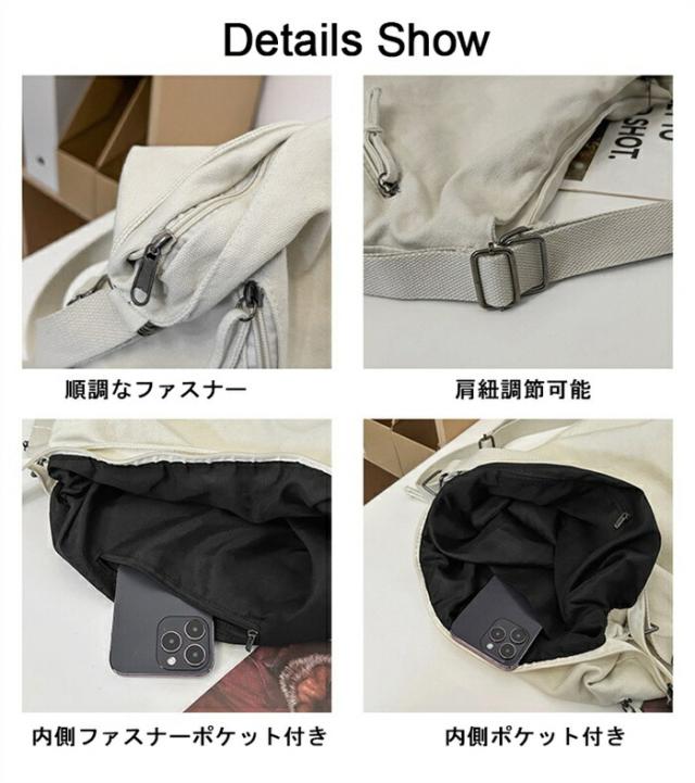 ショルダーバッグ 大容量 キャンバス バッグ 小物 ブランド雑貨 続々登場 ホワイト アーミーグリーン ブラウン ブラック