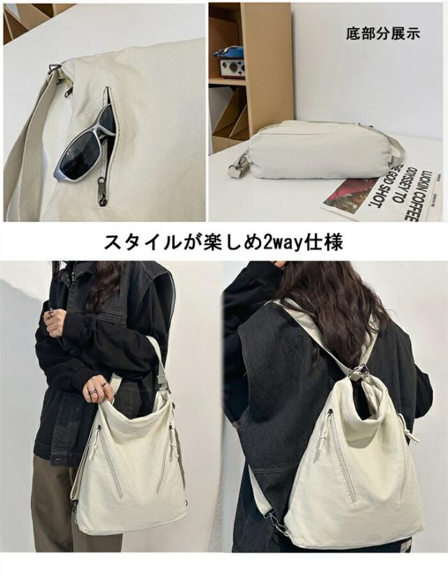 ショルダーバッグ 大容量 キャンバス リュック 2way 軽量 a4 肩掛け 多機能 耐水 ショルダーリュック レディース ポケット
