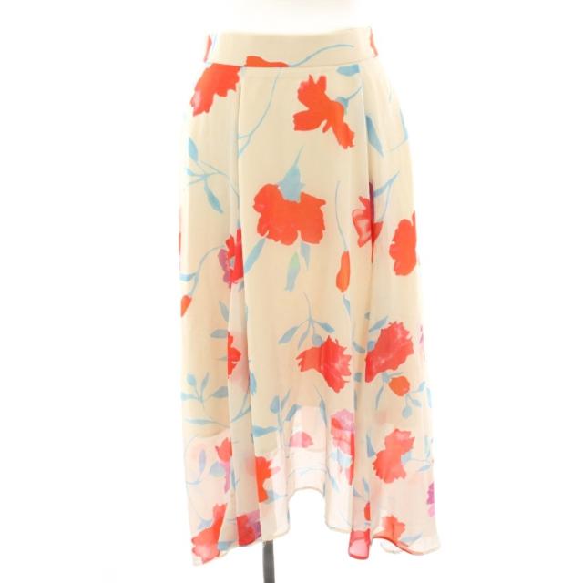 【中古】グレースコンチネンタル フレアスカート ミモレ ロング 花柄 シアー 変形 F アイボリー 水色 ライトブルー