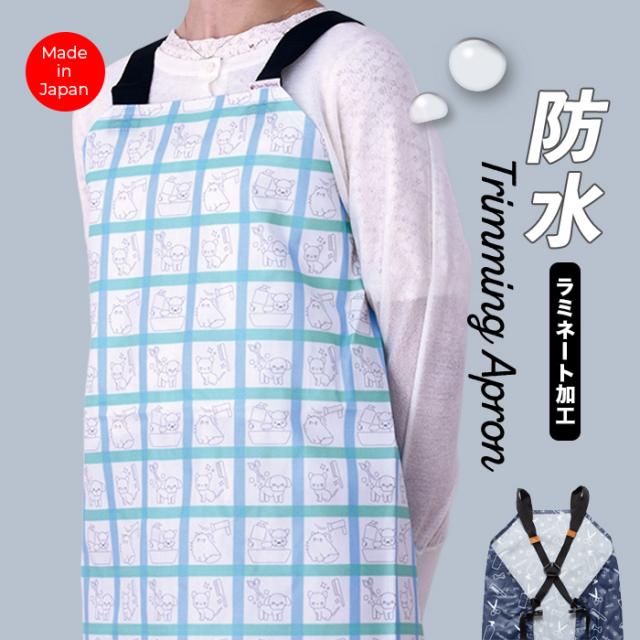 トリミング 防水 エプロン バックルタイプ トリミングタイム トリマー 美容師 理容 サロン エプロン トリミング 格子 白 青 緑