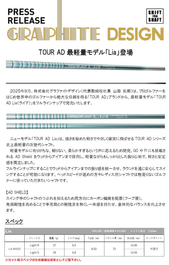 ■GraphiteDesign 2025 TOUR AD Lia グラファイトデザイン ツアーAD ライア 日本正規品 日本モデル 2025年9月発売