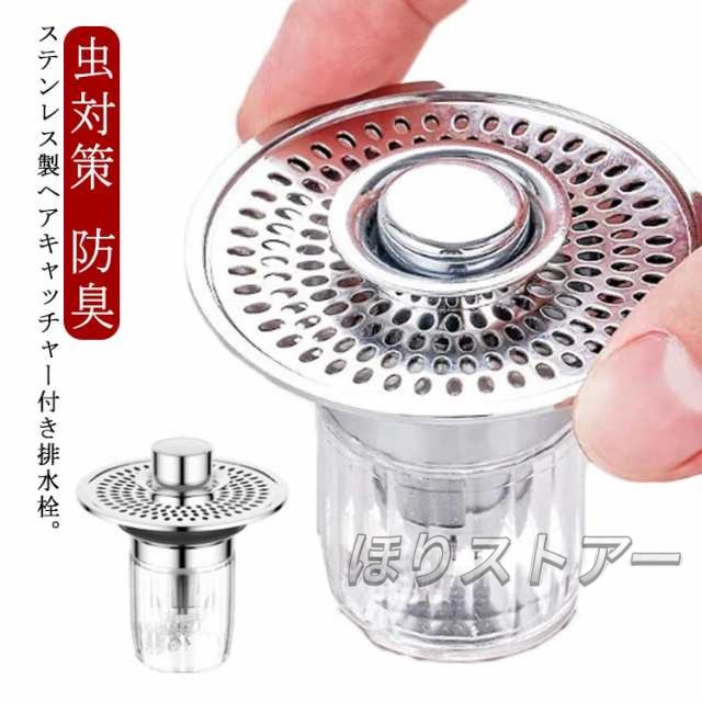 排水栓 排水栓 排水カゴ 排水口 排水溝 ヘアキャッチャー ポップアップ式排水栓 付き ヘアキャッチャー付き 洗面台 排水口 ゴミ受け ヘアキャッチャー付き ゴミストッパー 網付き 虫対策 防臭 フィルター