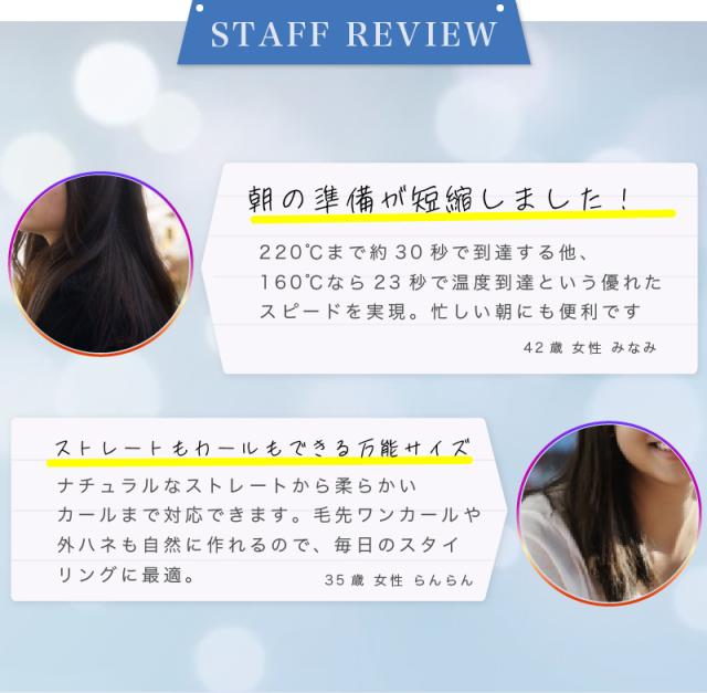 業界初の革新技術で髪へのダメージを軽減、さらにセンサーレス制御の温度コントロールに裏付けされた確かな温度上昇スピードを実現したプロのためのヘアアイロンです。