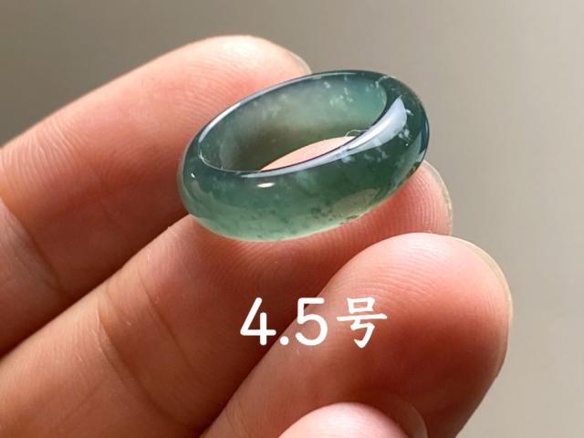 L13-183 ピンキーリング 氷種 青緑色 4.5号 グアテマラ産 A貨 本翡翠 くりぬき リング