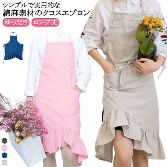 エプロン エプロン ワンピース キャミワンピ レディース 綿麻 ゆったり 大きいサイズ ロング丈 かぶるだけ プレゼント おしゃれ ナチュラル シンプル カフェエプロン 北欧風