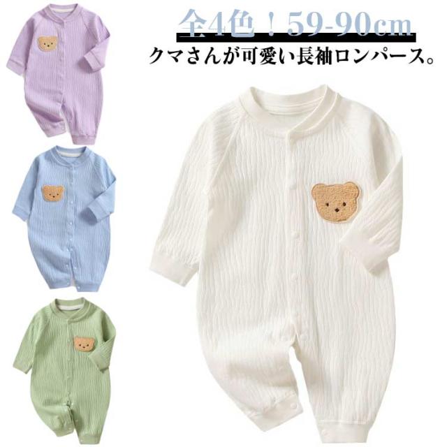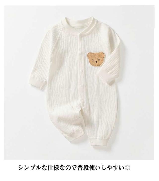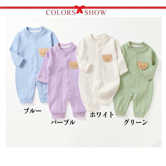 女の子 長袖 ロンパース 可愛い 冬 男の子 ベビーロンパース カバーオール 前開き 綿 コットン ベビー 赤ちゃん 子供服 おしゃれ 秋 くま ロンパース パジャマ ルームウェア 部屋着 退院着 保育園 幼稚園