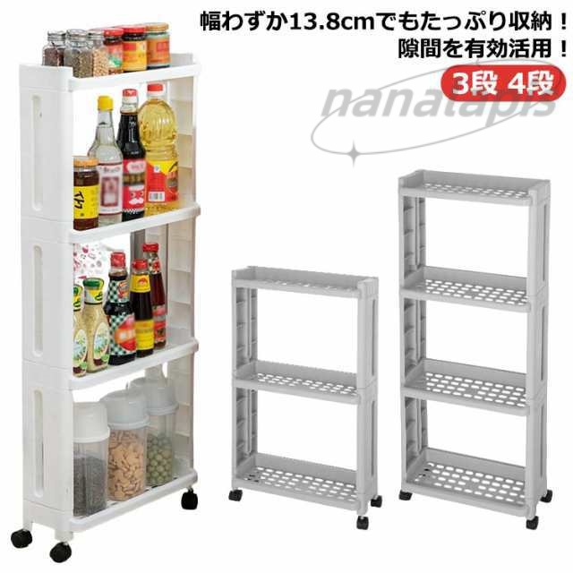 すきま収納 13.8cm 隙間収納 キャスター付き キッチンワゴン スリム ストッカー 3段 キャスター付き 4段 冷蔵庫横 キッチン収納 スキマ収納 ストッカー 細い ラック 白 ホワイト ワゴン プラスチック製 台所 キッチン 洗面所