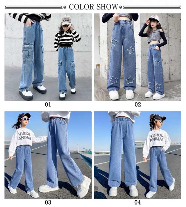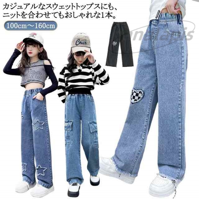 小学生 中学生 衣装 ジュニア 韓国子供服 女の子 ダメージ ワイドパンツ 送料無料 ウエストゴム ダンス ジーンズ キッズ ロングパンツ 長ズボン デニムパンツ ジーパン ジュニア 子供用パンツ おしゃれ 春 秋 冬 100cm 110cm 120cm 130cm 140cm 150cm