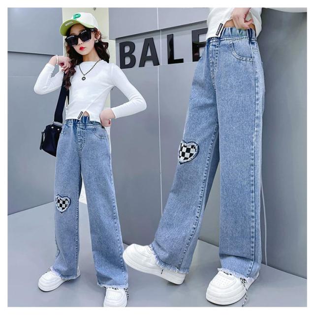 小学生 中学生 衣装 ジュニア 韓国子供服 女の子 ダメージ ワイドパンツウエストゴム ダンス ジーンズ キッズ ロングパンツ 長ズボン デニムパンツ ジーパン ジュニア 子供用パンツ おしゃれ 春 秋 冬 100cm 110cm 120cm 130cm 140cm 150cm
