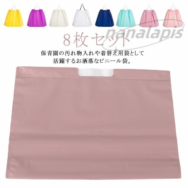 ビニール巾着袋 8枚セット 大 ポリ袋 カラー 巾着 手提げ袋 ビニールバッグ 仕分け袋 巾着 袋 厚手 保育園 幼稚園 小学校 汚れ物入れ 着替え袋 防水 エコバッグ 旅行 小物入れ 小分け プール 海 無地 ジム ナイロン ラッピング袋