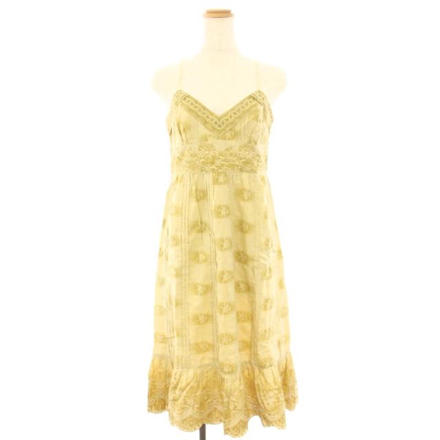 【中古】トッカ TOCCA キャミワンピース カットワーク 刺繍 ミモレ ロング 2 ベージュ カーキ OPTS-HM-1043 /HN