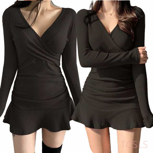 レディース リブ ワンピース キャバドレス キャバ ドレス パーティードレス ミニワンピース タイト 秋冬 春夏 キャバワンピ ミニドレス セクシー 大人可愛い 無地 フリル ボディコン ミニ