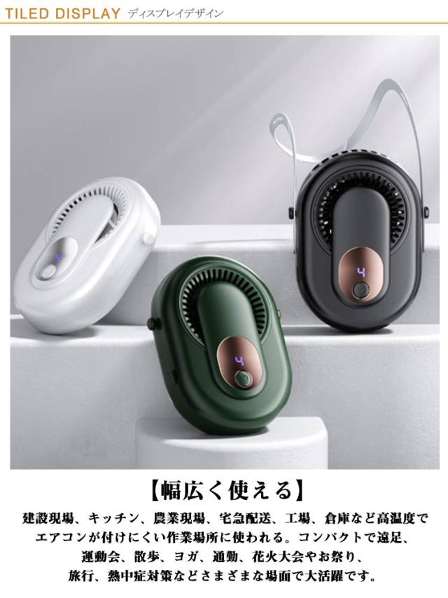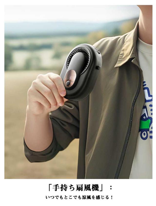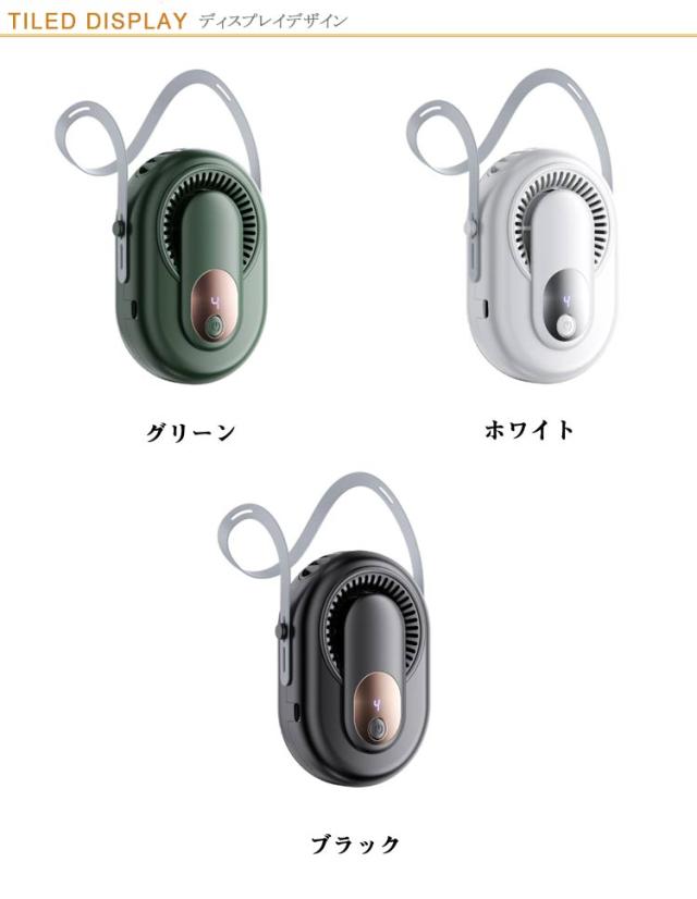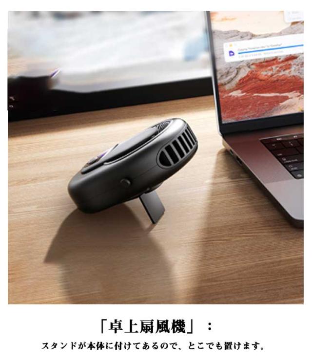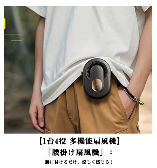 | 1台4役!ハンズフリーミニ扇風機。【69*18*97mm】 【1台4役 多機能扇風機】「首掛け扇風機」:ネックストラップ付き、首にかけばマスクつけでも、この夏も快適に!「腰掛け扇風機」:腰に付けるだけ、涼しく感じる!「卓上扇風機」:スタンドが本体に付けてあるので、とこでも置けます。「手持ち扇風機」:いつでもとこでも涼風を感じる! 【5段階風量調整扇風機】ワンタップで簡単に風力を切り替えることができます。ハンズフリー扇風機暑さやお好みによって自由に風量が調節できますし、電力の無駄消費も抑えられます。 【2000mAh大容量5?10時間連続稼動】内蔵電池を採用し、最小風量モードで約10時間、最大風量モードでも約5時間の連続使用ができます。パソコン、車載USB(type-c)充電器、で充電しながら使用もできますので、お出かけ時や充電ができない場所でも安心です。 【幅広く使える】建設現場、キッチン、農業現場、宅急配送、工場、倉庫など高温度でエアコンが付けにくい作業場所に使われる。コンパクトで遠足、運動会、散歩、ヨガ、通勤、花火大会やお祭り、旅行、熱中症対策などさまざまな場面で大活躍です。 【静音かつ強風】強く風力、低騒音。ブラシレスモーターの安定性に加えて、強力な風量を確保しながらも回転音が気にならないです。 オフィスなど静かな環境でもストレスなく快適に使用でき、静かで優しい風を感じながら、より仕事や勉強に集中できます。 | |
