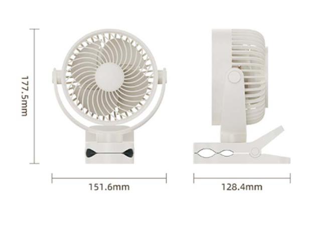 | サイズについての説明 | 入力電流:1A 入力電圧:DC 5V 使用電力:1.15?7.4W 充電時間:3時間 バッテリー容量:2000mAh(18650) 使用時間: 低モード 8.3時間 / 中モード 4.5時間 / 高モード 3.1時間 / 超高モード 2.2時間 騒音: 36?45dB 重量:387g 本体サイズ:151.6x128.4x177.5mm パッケージ内容:説明書×1、扇風機×1、USB充電ケーブル×1 ※サイズや重量は個体差により若干の誤差があります。 |