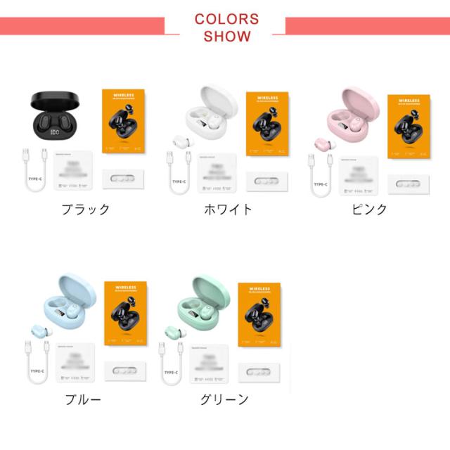 | サイズについての説明 | サイズ:仕樣:Bluetoothバージョン:5.0 通話/再生時間:約5時間 Bluetooth通信距離:10m パッケージ内容:イヤホン、充電&収納ケース、充電ケーブル |
