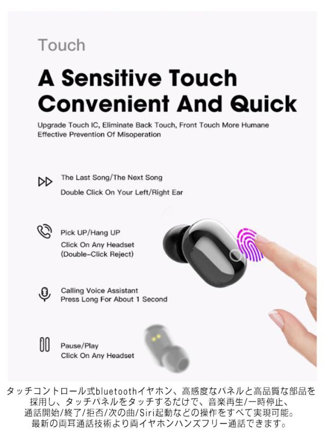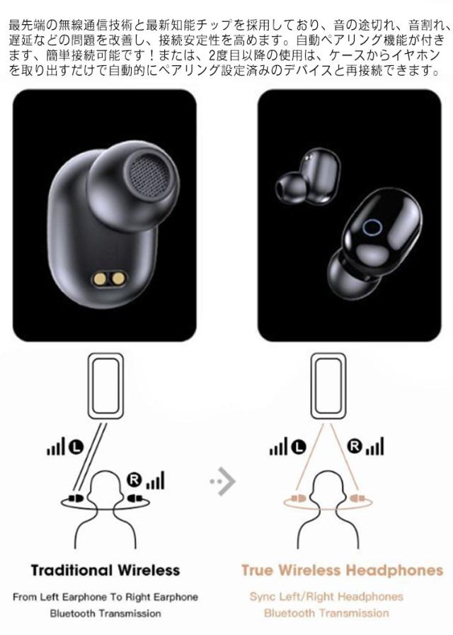 | 【Bluetooth5.0自動ペア&自動ON/OFF】 最先端の無線通信技術と最新知能チップを採用しており、音の途切れ、音割れ、遅延などの問題を改善し、接続安定性を高めます。自動ペアリング機能が付きます、簡単接続可能です!または、2度目以降の使用は、ケースからイヤホンを取り出すだけで自動的にペアリング設定済みのデバイスと再接続できます。 【タッチコントロール】 タッチコントロール式bluetoothイヤホン、高感度なパネルと高品質な部品を採用し、タッチパネルをタッチするだけで、音楽再生/一時停止、通話開始/終了/拒否/次の曲/Siri起動などの操作をすべて実現可能。最新の両耳通話技術より両イヤホンハンズフリー通話できます。 【極めて軽量、カナル型】 もっと軽量化にしたデザイン、長時間装着しても耳が痛くない!耳の輪郭に完璧合致するカナル型設計で、耳としっかり噛み合います。その他ノイズリダクション技術を採用し、音声漏れることがありません。 | |