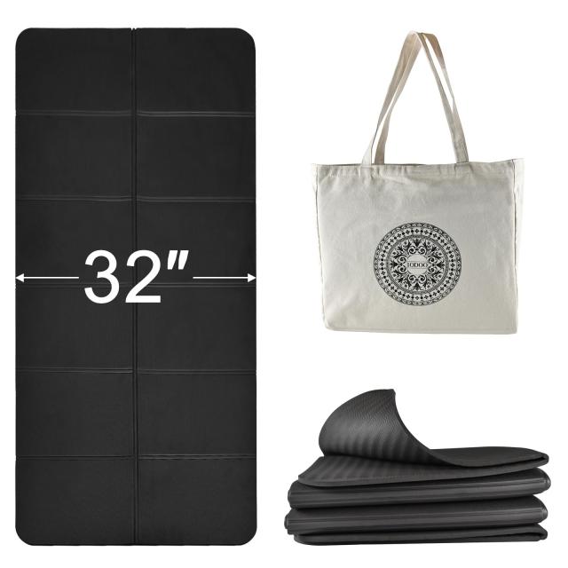 iodoo 折りたたみ式ヨガマット 長さ72インチ x 幅32インチ x 0.32インチ 極厚 幅広 折りたたみヨガマット 旅行用 キャンバスキャリーバッ