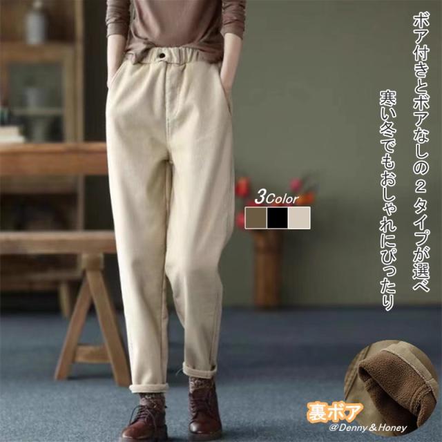 送料無料 レディース ボトムス ボア付き ボアなし デニムパンツ テーパード 防寒 冬 暖かい パンツ きれいめ シンプル おしゃれ ボア あったか 大きめ 裏起毛 普段着 仕事 カジュアル
