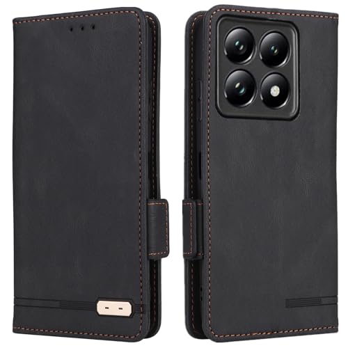 Xiaomi 14T ケース 手帳型 [ストラップ 同梱] スタンド カバー カード カード入れ ストラップ カードケース スマホケース ストライプ マグネット ケース 携帯ケース つや消し レトロ ブラック 送料無料
