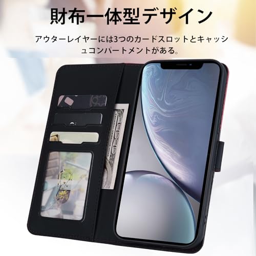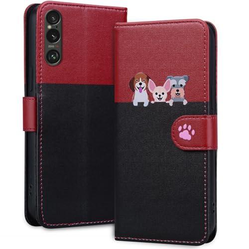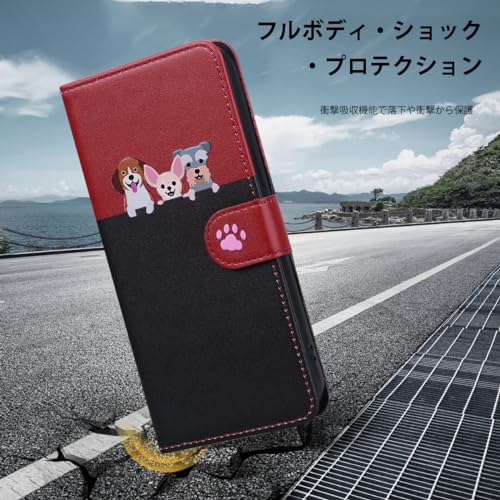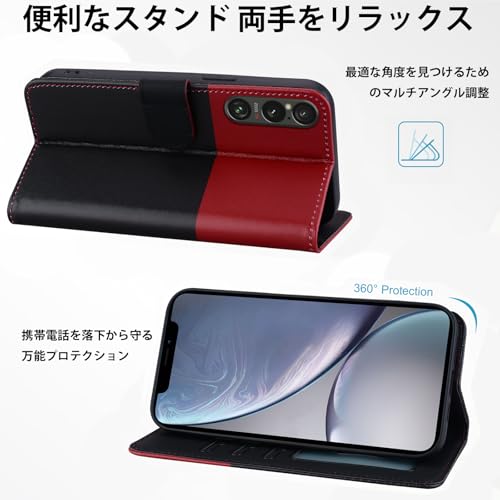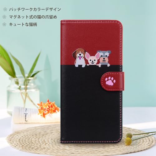 Xperia1 vi ケース 手帳型 so-51e 手帳型ケース sog13 カード収納 スマホケース 人気 可愛い 猫 携帯電話ホルダー 磁気バックル クッション性と衝撃吸収性[ブラック+レッド]